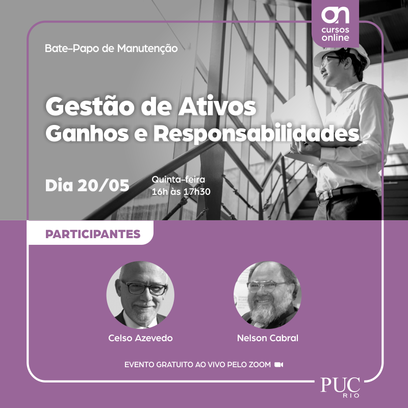 Visitem o site do CCE-PUC-RJ e verifiquem as informações do curso de extensão em Gestão Avançada na Engenharia de Manutenção.