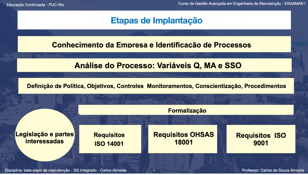 No desenvolvimento que proponho em minhas pesquisas, o objeto acima apresentado, é adicionado a: Ergonomia, Manutenção, Sustentabilidade e a Gestão de Ativos, gerando uma matriz integrada de todas as normas e procedimentos técnicos que promovem as boas práticas no ambiente laboral de qualquer organização manutenção.