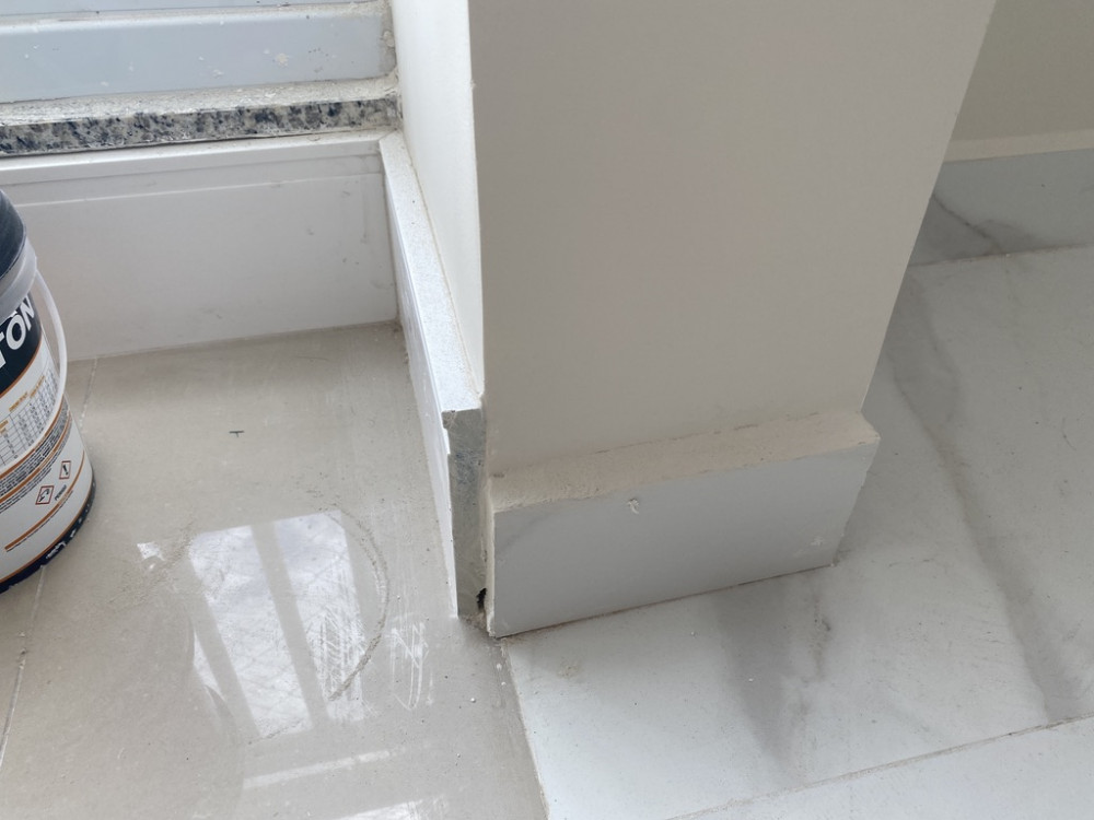 Figura 02: Vista da falha na colocação do rodapé - Especificação técnica não contemplou os diferentes materiais.