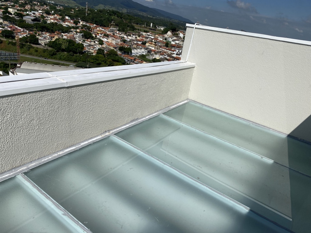 Figura 06: Vista do Teto de Vidro - Cobertura - Reconstruído após obra ter sido entregue. Ausência de fiscalização na obra. Vazamentos diversos na parte interna do imóvel, grande prejuízo.