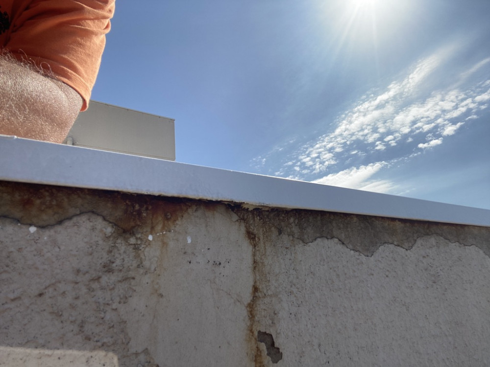 Figura 07: Vista da Fachada - Cobertura - Diversas Trincas no Revestimento Externo - Ausência de manutenção da fachada - Provocando Infiltrações Internas no Imóvel. Ausência de fiscalização na obra.