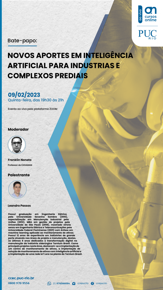 A CCE-PUC-RIO está promovendo o bate-papo com a moderação do prof. Franklin Nonato e o palestrante Leandro Passos.