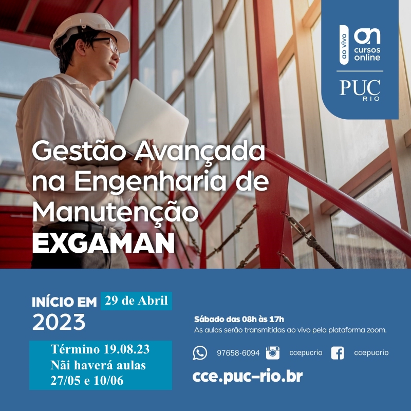 • Engenharia de Confiabilidade e Introdução à Manutenção Centrada na Confiabilidade. 8h