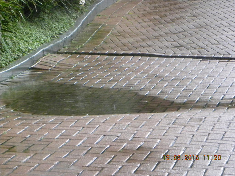 Foto 2: Vista piso interno no Condomínio, execução de substrato com erros construtivos - Recalque.