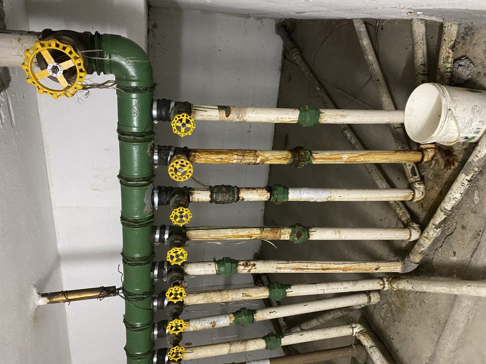 Foto 1: Vista do barrilete de um condomínio residencial, materiais diversos, aço galvanizado e pvc entre outros.