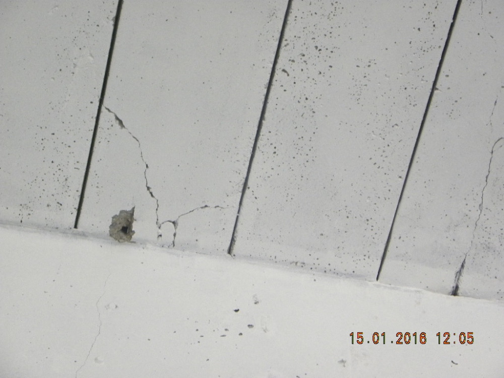 Foto 3: Vista da laje préfabricada com trincas - Obra recém entregue.