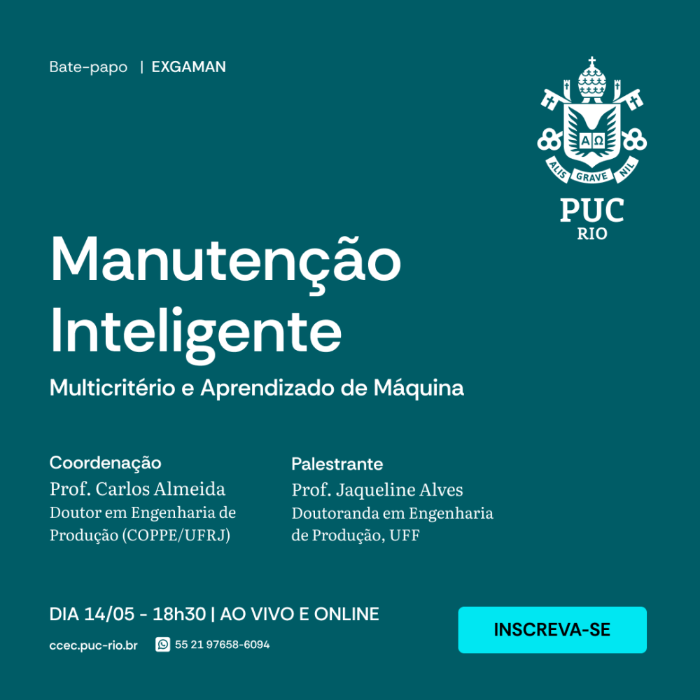 A CCEC-PUC-RIO estará promovendo o Bate-papo Manutenção Inteligente - Multicritério e Aprendizado de Máquina.